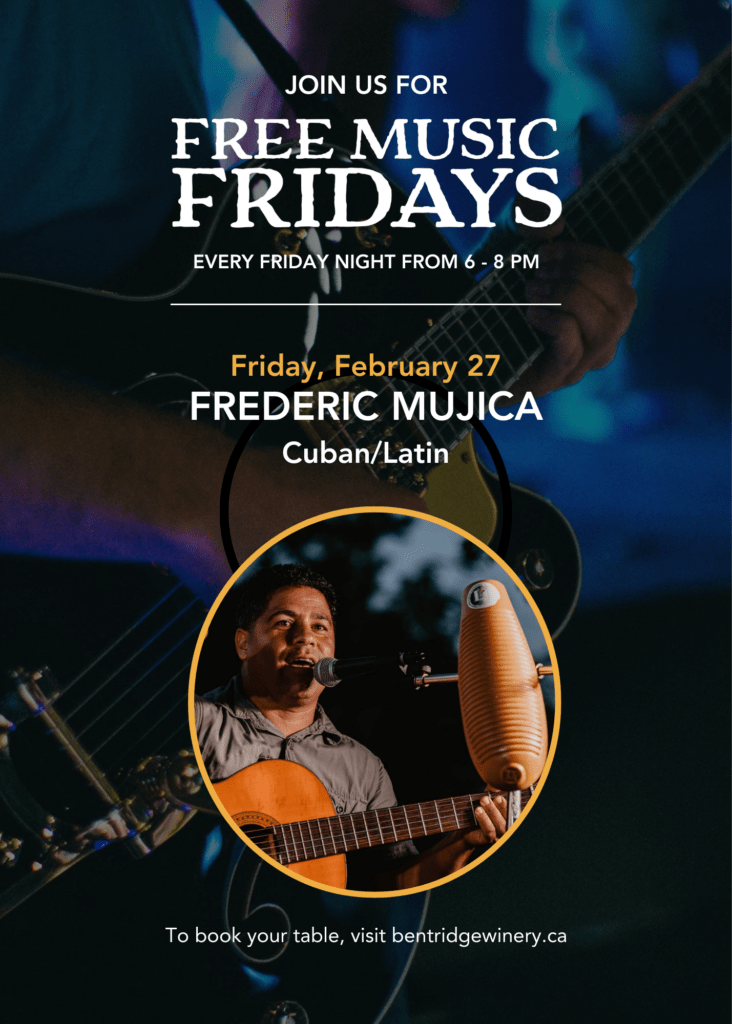Free Music Fridays – Frederic Mujica February 27, 2026 6:00 – 8:00pm “Frederic Mujica ”The Lost Tourist” is a Latin musician from Kentville Annapolis Valley, Nova Scotia. Frederic Mujica is […]