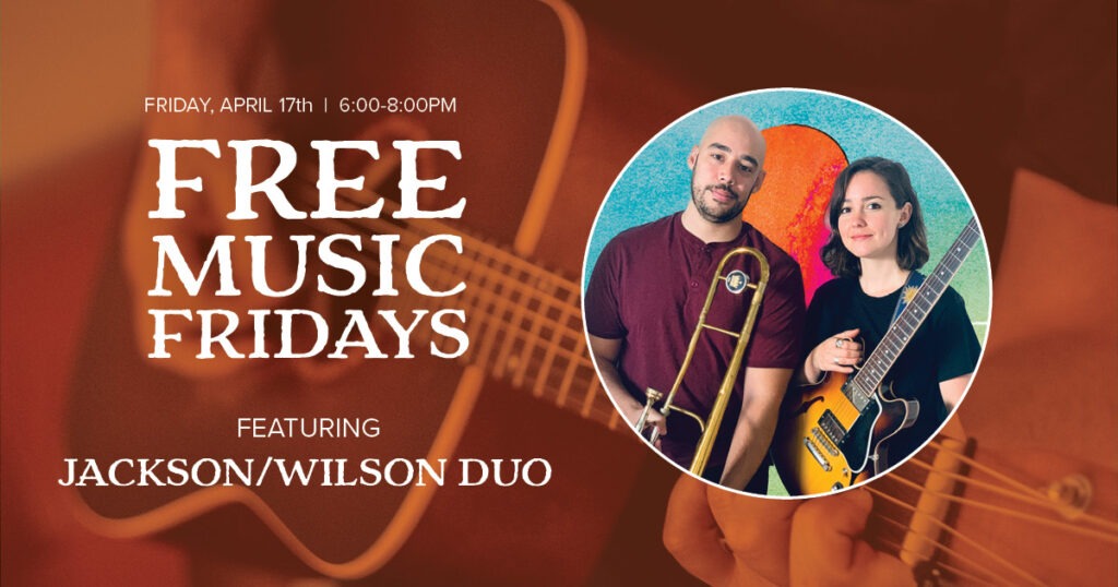 Free Music Fridays – Jackson / Wilson Duo April 17, 2026 6:00 – 8:00pm Andrew Jackson and Sam Wilson have been exploring the interplay of trombone and guitar, while honing […]