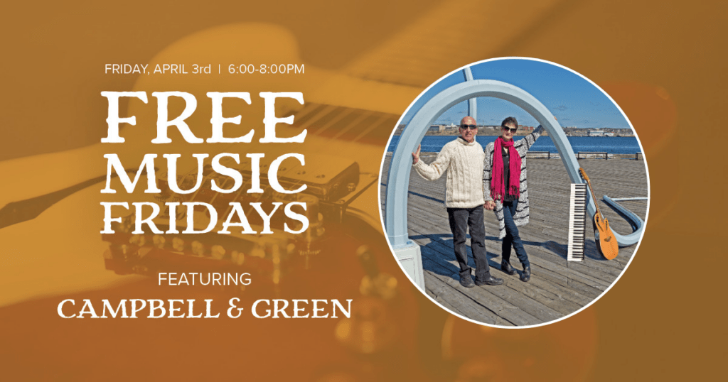 Free Music Fridays – campbell & Green April 3, 2026 6:00 – 8:00pm Singer-Songwriter Robert Campbell (Dartmouth, NS) has been playing keyboards since the age of 7 and started writing […]