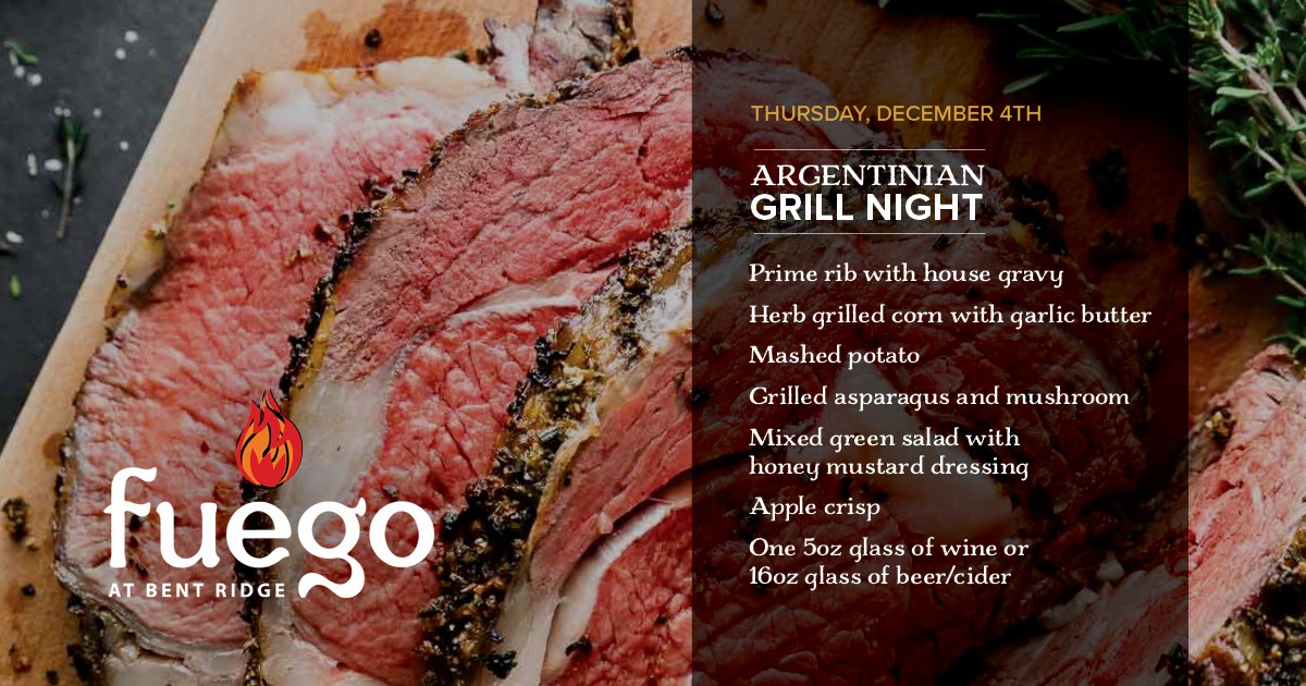 Grill Night includes one 5oz glass of wine or 16oz glass of beer/cider