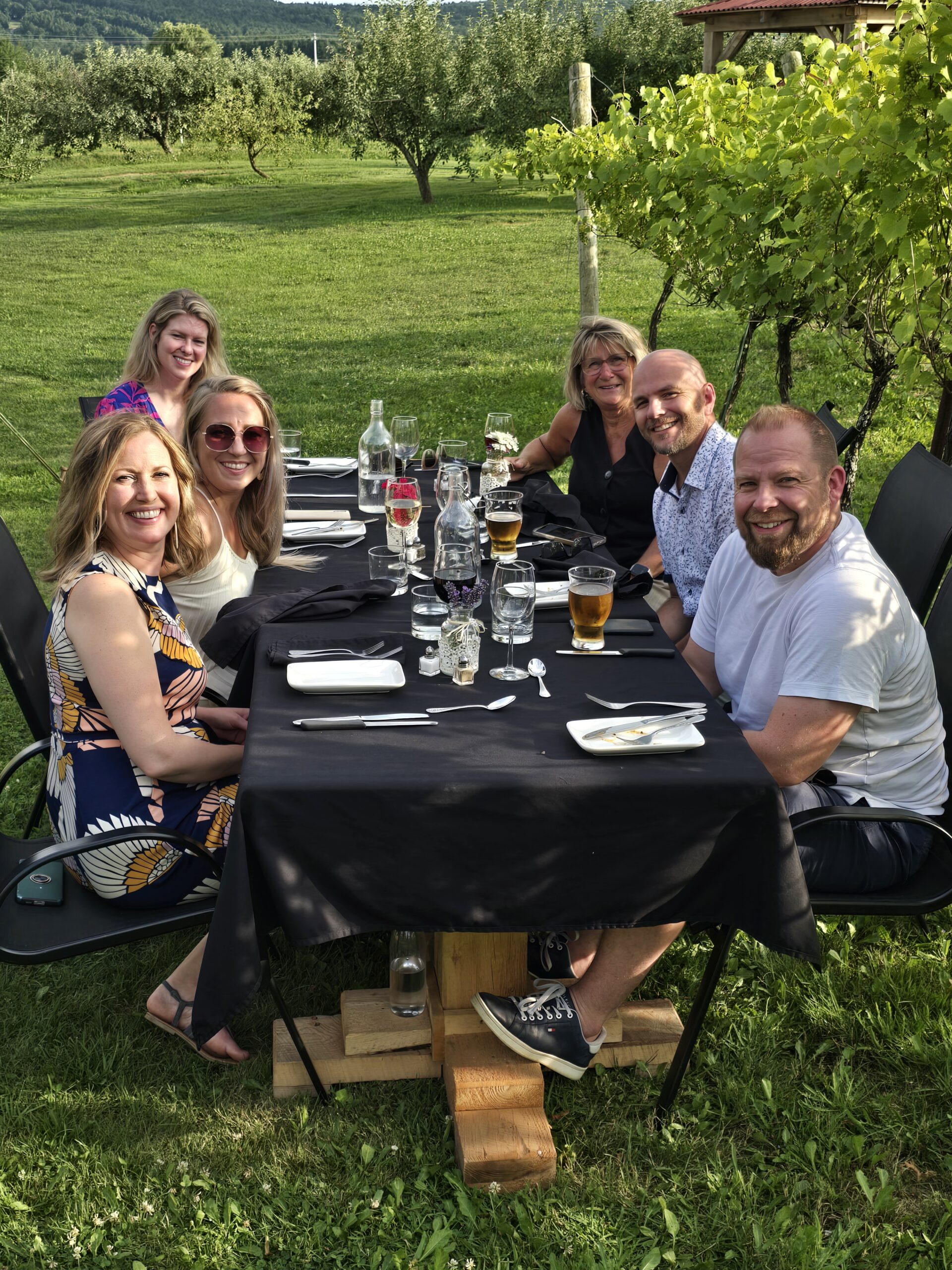 Indulge in a charming outdoor dining experience among the blooming vines of Bent Ridge Winery’s stunning vineyard setting in beautiful rural Nova Scotia.