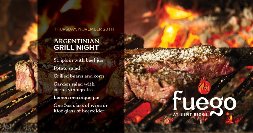 Grill Night includes one 5oz glass of wine or 16oz glass of beer/cider