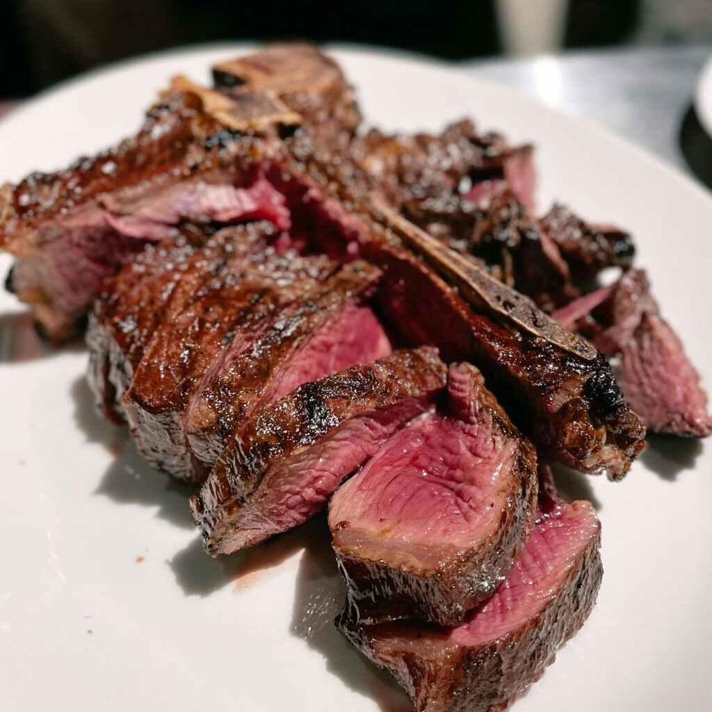 This week’s menu: T-bone steak with beef jus, Roasted potato, Sauteed garlic butter beans and corn, Spinach salad and Cinnamon bun cheesecake